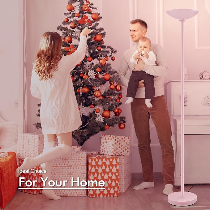 BoostArea Torchiere Floor Lamp Pink, 30W Super Bright LED Standing Lamp, 3000K Stepless Dimmable Pole Lamp with Rotary Switch, 71inch Tall Metal Modern Floor Lamps for Living Room,Bedroom,Home Decor