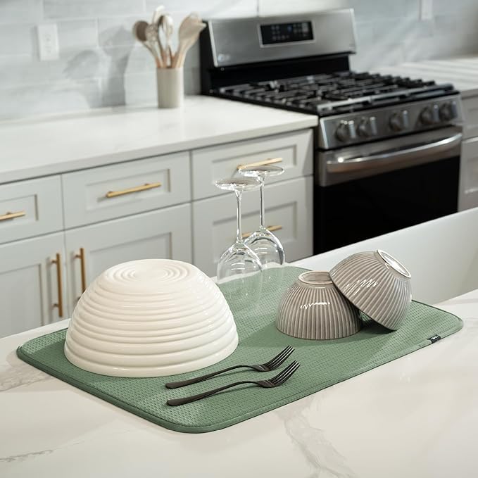 S&T INC. Dish Drying Mat XL, 18” x 24”, Absorbent Microfiber Kitchen Counter Mat, Dish Drying Pad for Dishes, Utensils, Pots and Pans, Extra Large, Sage Green