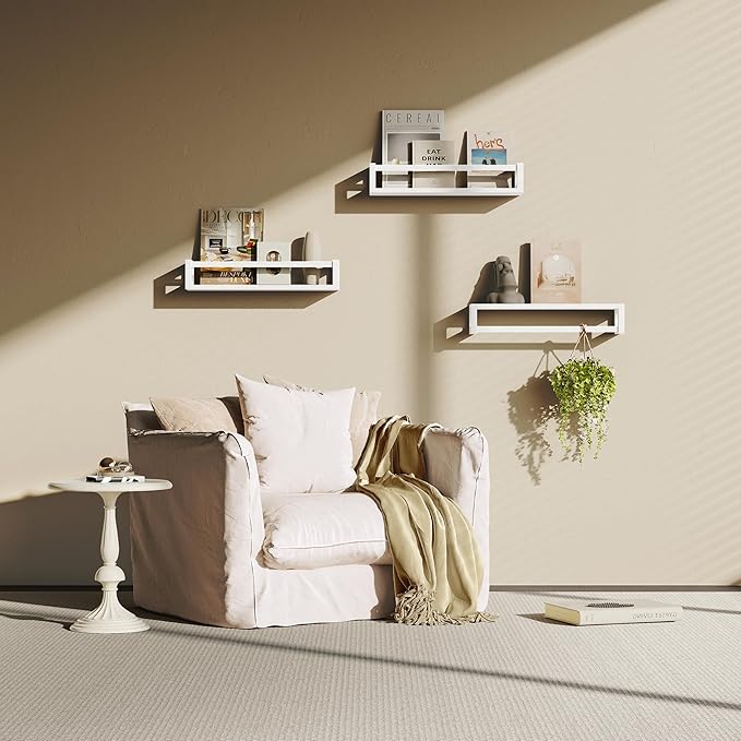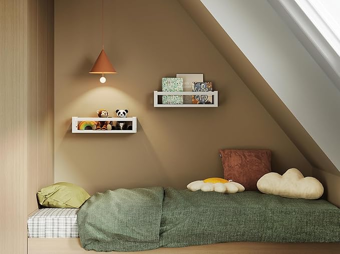 Upgraded Thick Floating Shelves - Multi-Use Wall-Mounted Bookshelves for Kids and Nursery, Ideal for Books, Toys, Spice Rack, Decor - White