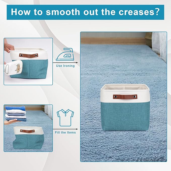 - 【Maintenance & Care Tip】 - Collapsible design for space saving. Our foldable baskets comes in a compression packing which may result in wrinkled storage bin during the long transit. Get rid of the wrinkles by either stuffing the fabric storage bins with blankets and pillows for a few days or steam iron them at low-heat setting. The organization baskets are easy to clean, you can dust the basket with a soft cloth with light soapy water when needed. Not recommended to machine wash.