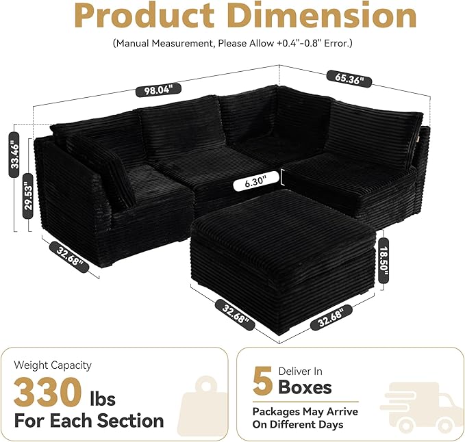 - Special Feature : DIY, Deep Seat, Modular, Plush Corduroy, Sectional