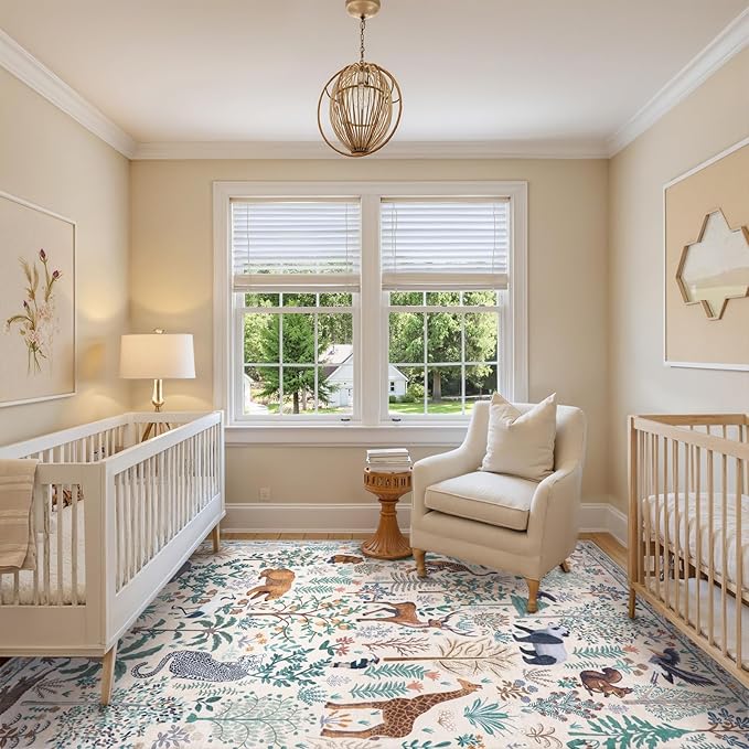 OJIA Jungle 8x10 Area Rugs for Living Room Bedroom Large Washable Rugs, Thin Modern Nursery Rug Non-Shedding Kids Playroom Rug Stain Resistant Large Carpet Neutral Rugs for Kids Room Dining