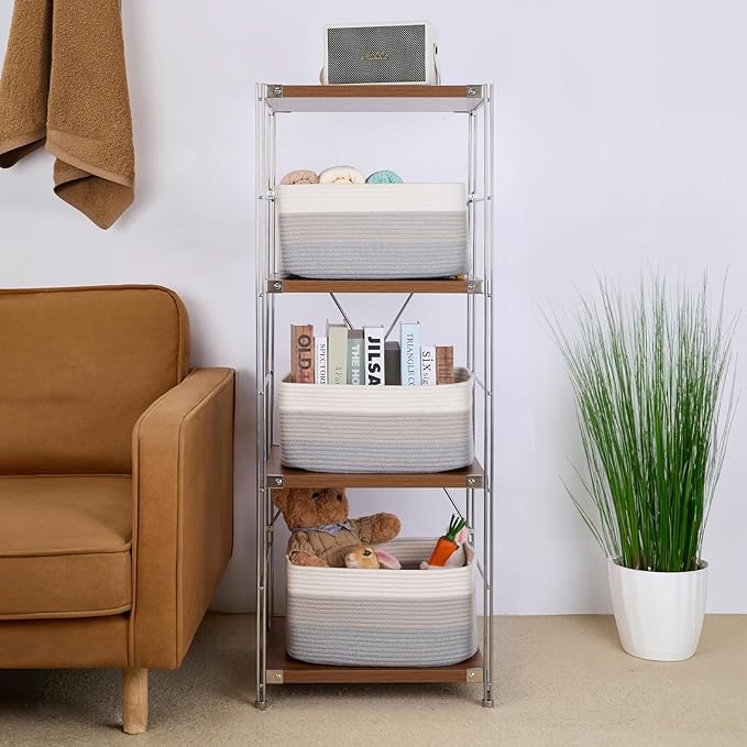 - [ Stylish Design ]: With a modern minimalist design, our woven rope baskets are a chic alternative to traditional rattan. They’re perfect for closets, changing table organizer, and cube shelves, adding warmth and texture to any room while tackling home clutter
