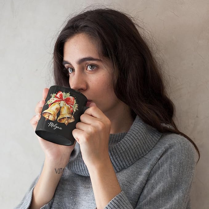 - 💝 UNIQUE DESIGN MUG: Celebrate the holiday season with this "Christmas Jingle Bells Design Ceramic Mug". Click "Customize Now" to add a name, creating a festive and personalized gift great for the Christmas season. This black ceramic mug is ideal for enjoying warm winter drinks in style.
