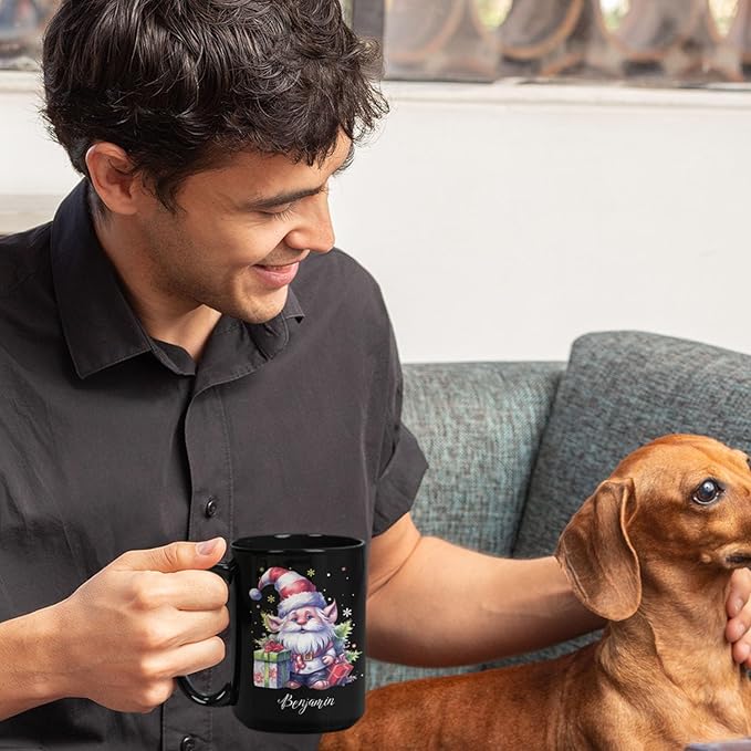 - 💝 UNIQUE DESIGN MUG: Add some festive fun to your holidays with this "Cute Gnome And Gifts Design Mug" featuring an adorable gnome holding gifts. Click "Customize Now" to add a name, making it a great personalized gift for gnome lovers. This black ceramic mug is ideal for enjoying drinks during the Christmas season.