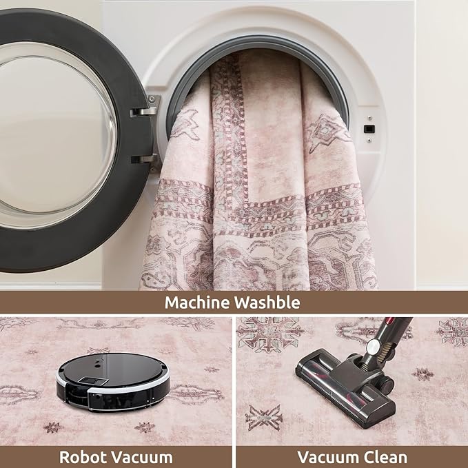 AMOAMI-Vintage Area Rug 6X9 Pink Rugs for Living Room-Soft Living Room Rug Non Slip Rugs for Bedroom Carpet Machine Washable Rug for Dining Room Bedside Office Room Decor