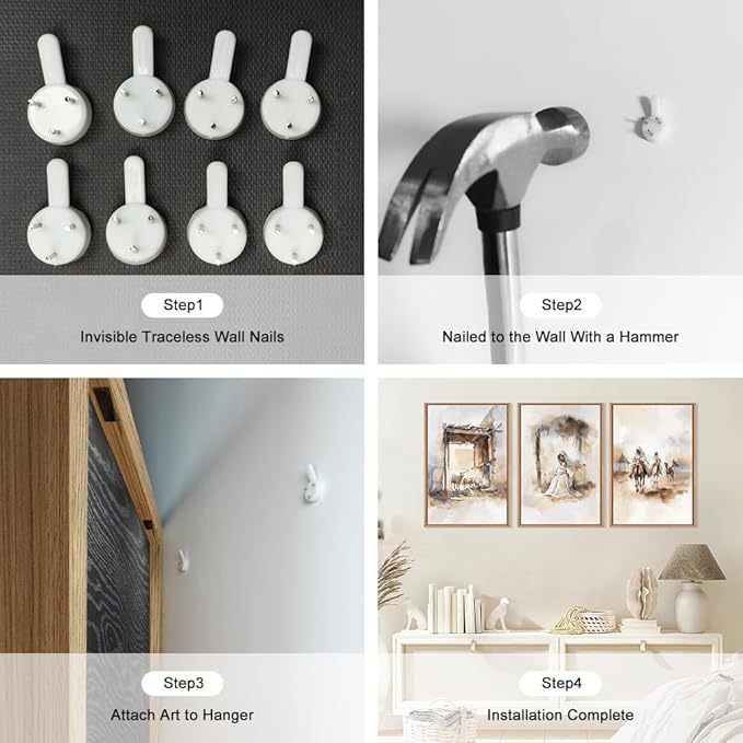 - 【Easy To Hang】The Easter Jesus framed picture set is easy to hang, ready to hang, it is finished with metal hooks and non-trace nails. It will only take about 5 minutes for you to hang it up.