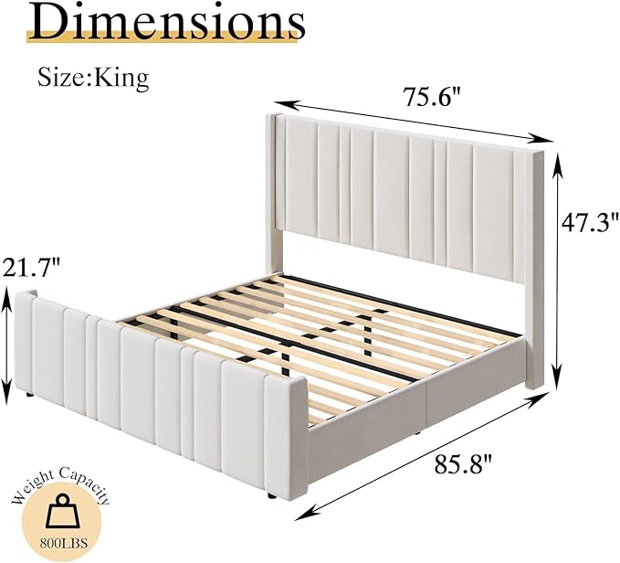 - Easy Assembly & Support: Assemble in 2 hours using provided hardware and clear labeled parts; For this king velvet upholstered bed frame, 2 adults assemble recommended. Enjoy responsive customer support addressing concerns within 24 hours