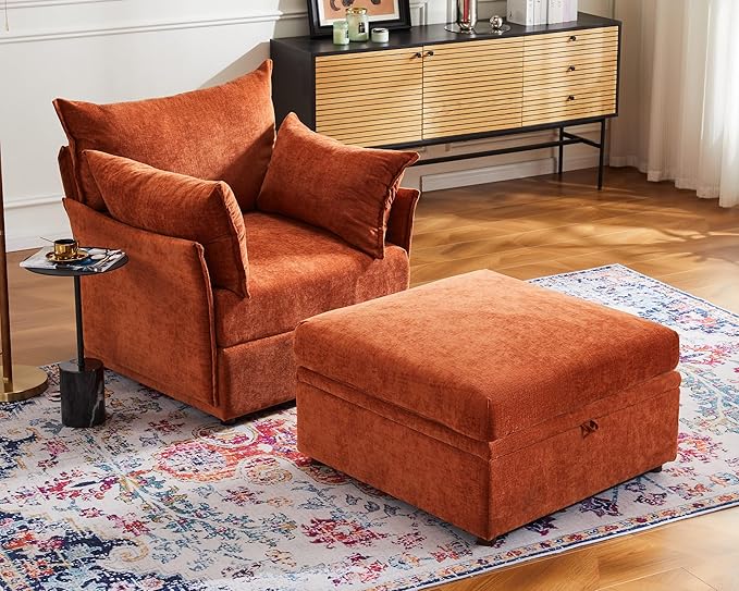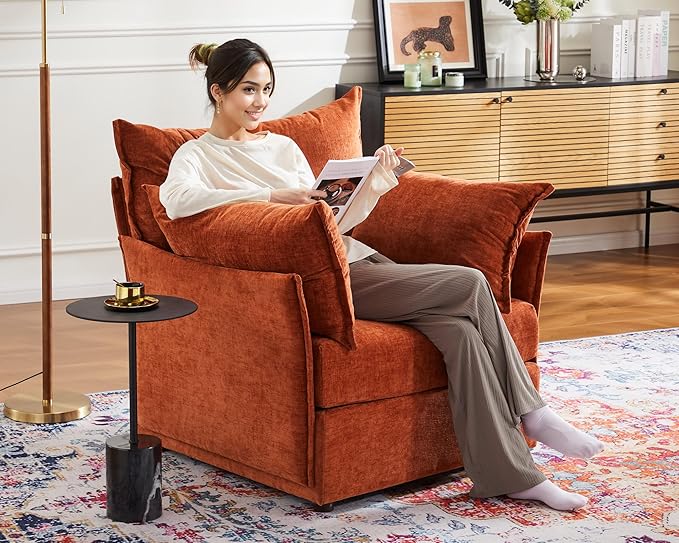 Terracotta Oversized Accent Chair, Upholstered Modern Sofa Chair with Removable Backrest & Detachable Cover, 24.5" Deep Seat Large Reading Armchair