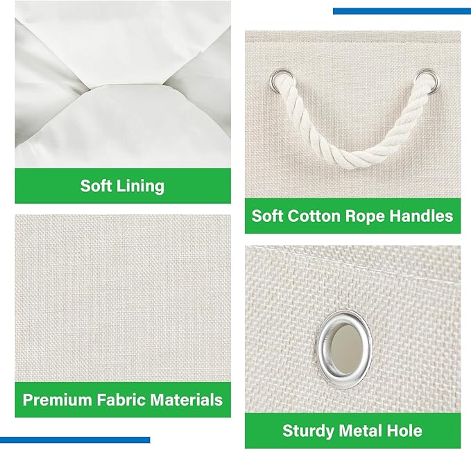 - Cotton Rope Handles & Premium Fabric: Soft handle will give you a very comfortable grip feeling, will not feel strangled hands, more easier to use the linen basket. The canvas storage bins equipped with soft and sturdy handles for moving conveniently. Sturdy soft handles on both sides are convenient to retrieve from shelves. These closet storage baskets are made of durable fabric which is strong and lightweight