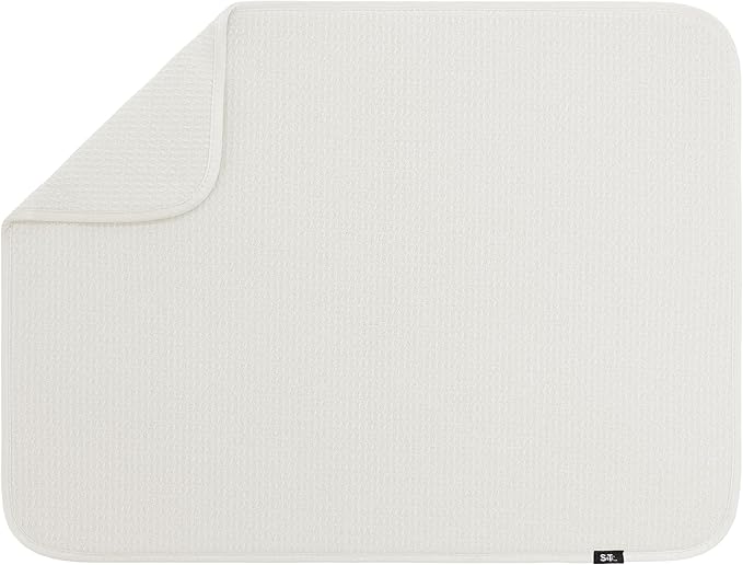 S&T INC. Dish Drying Mat XL, 18” x 24”, Absorbent Microfiber Kitchen Counter Mat, Dish Drying Pad for Dishes, Utensils, Pots and Pans, Extra Large, Cream