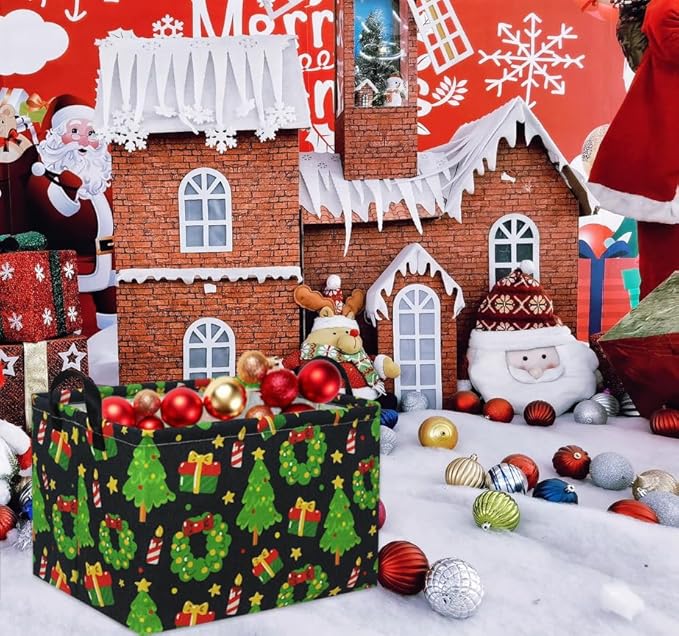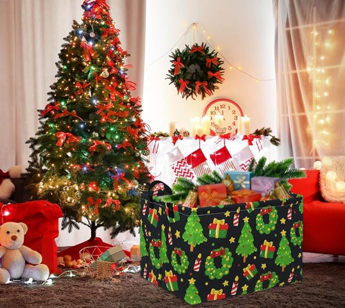 - MATERIAL:The christmas basket is made of durable canvas &The inner lining is made of waterproof fabric; sturdy metal rod frame around the top keep the basket shape.
