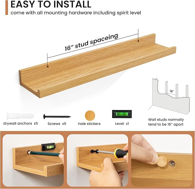 - Effortless Installation: Each shelf comes with pre-drilled holes and all necessary hardware, making installation quick and easy, so you can enjoy your new decor in no time.