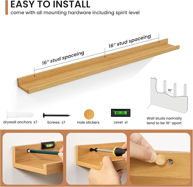 - Effortless Installation: Each shelf comes with pre-drilled holes and all necessary hardware, making installation quick and easy, so you can enjoy your new decor in no time.