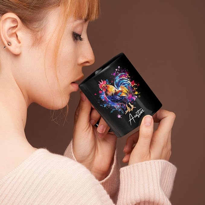 - 💝 NOVELTY DESIGN MUG: Start your day with a smile using this Customized Name Rooster Coffee Mug, featuring a personalized name and a lively rooster design. An awesome mug gift for both men and women, this chicken-themed black cup is available in 11oz and 15oz sizes. Click 'Customize Now' to create a fun and thoughtful mug gift that any rooster or chicken lover will enjoy.