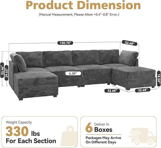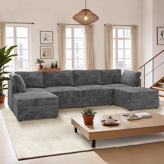 - Spacious Furniture:Sturdy solid wood frame, high-end breathable Plush corduroy fabric, filled with high rebound sponge, making this modular sectional sofa beautiful and comfortable, it can be a perfect match for your living room, bedroom, home office, etc.