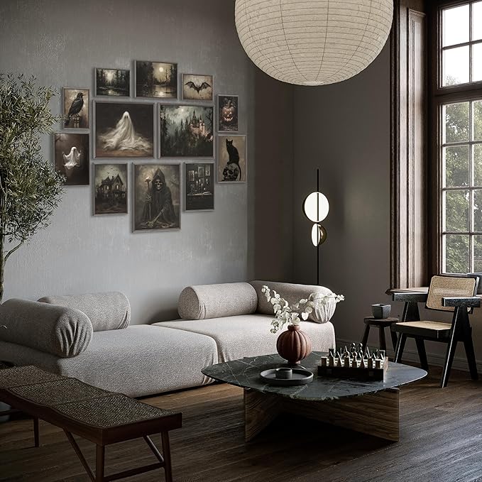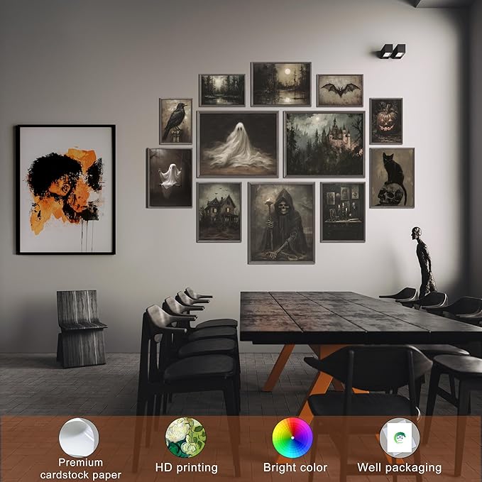 - Halloween Theme: Our wall art prints with a Halloween theme, featuring a bat, pumpkin, ghost, skull, crow, and other witchy, eerie, and vintage elements, will add to the festive atmosphere.