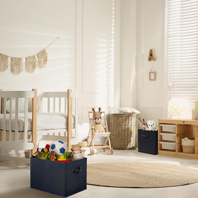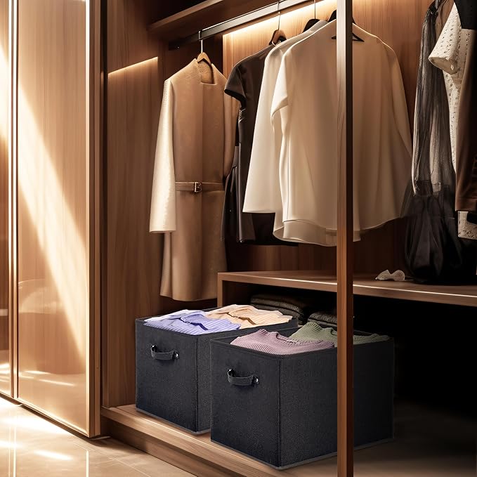 SIMPLE HOUSEWARE 15 x 13 Inch Collapsible Fabric Storage Bin with Handles, 2 Pack, Black