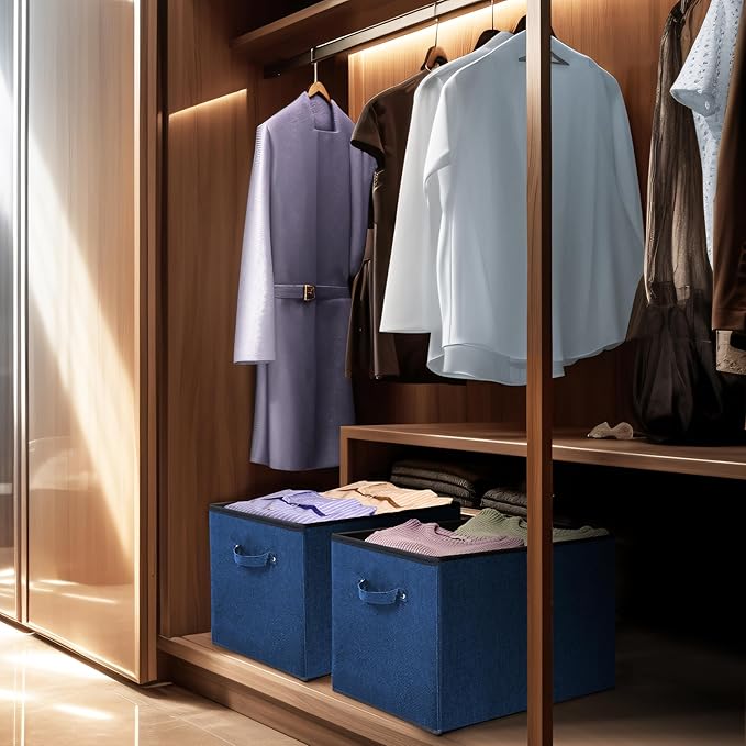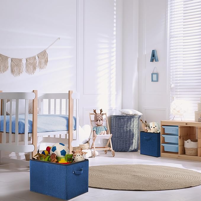 SIMPLE HOUSEWARE 15 x 13 Inch Collapsible Fabric Storage Bin with Handles, 2 Pack, Steel Blue