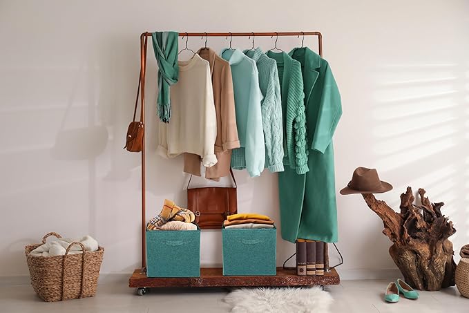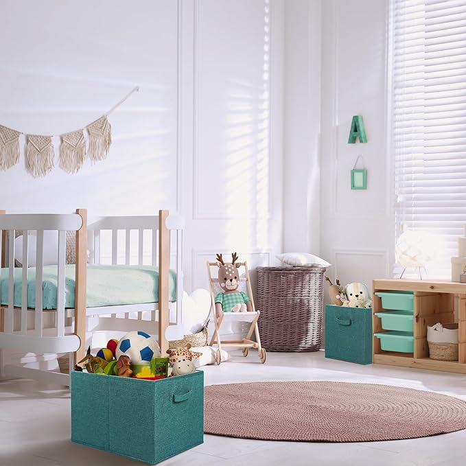 SIMPLE HOUSEWARE 15 x 13 Inch Collapsible Fabric Storage Bin with Handles, 2 Pack, Turquoise