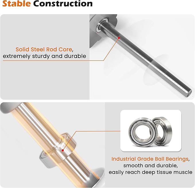 - Premium Material: KITWILD muscle roller is made of high-quality natural rubber, providing the perfect balance of flexibility and firmness. Industrial-grade ball bearings are smooth and durable and easily reach deep tissue muscle. Solid steel rod core, extremely sturdy and durable