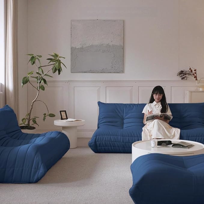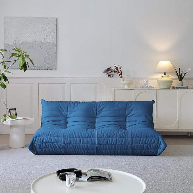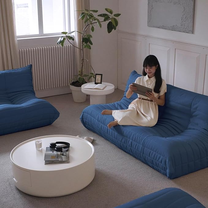 Luxury Sofa Couch Chair, Lazy Floor Seating, Fireside Bean Bag Chair, Ergonomic Tatami Sofa Lounger for Living Room, Bedroom, Office, 3 Seat, Blue