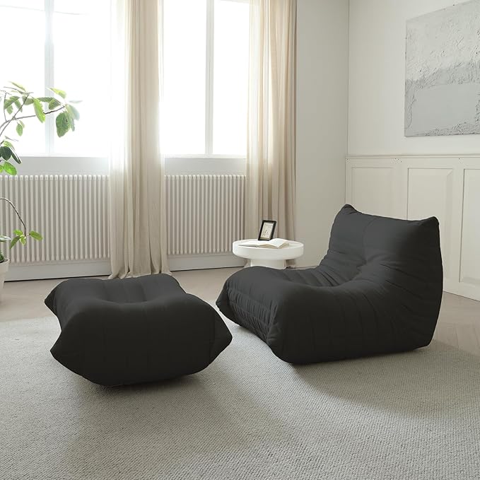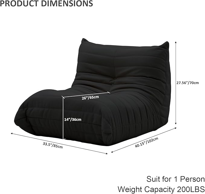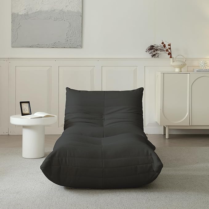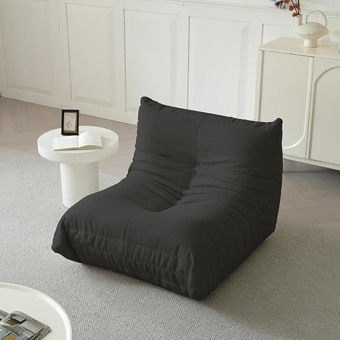 Luxury Sofa Couch Chair, Lazy Floor Seating, Fireside Bean Bag Chair, Ergonomic Tatami Sofa Lounger for Living Room, Bedroom, Office, Single Seat, Black