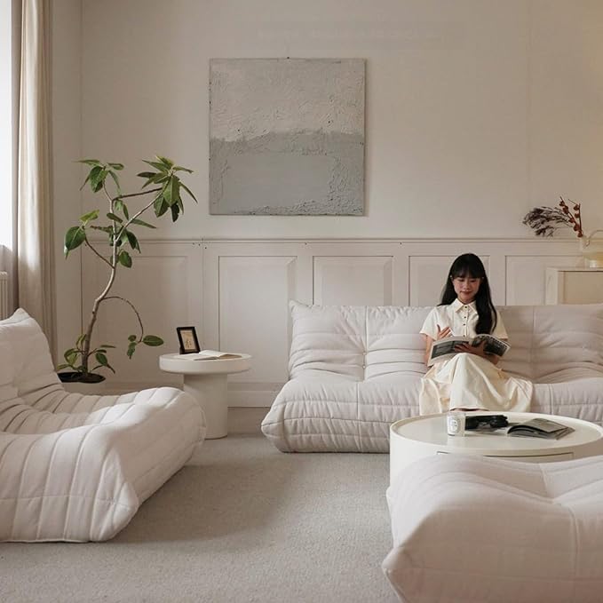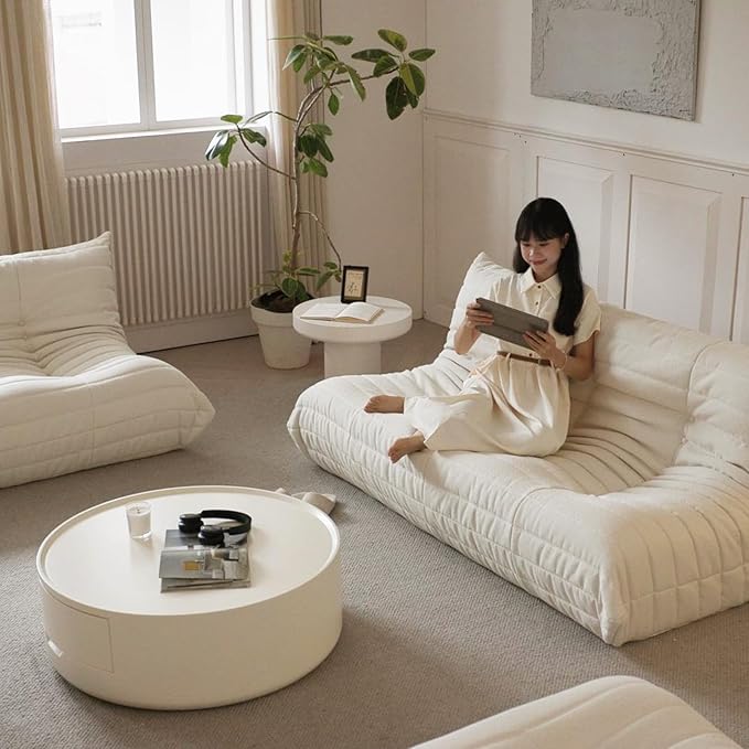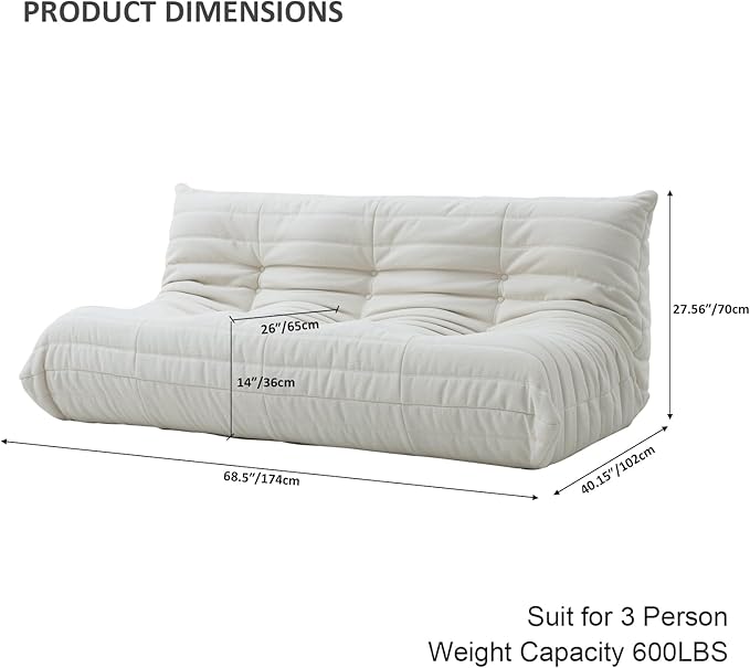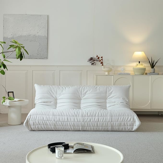 Luxury Sofa Couch Chair, Lazy Floor Seating, Fireside Bean Bag Chair, Ergonomic Tatami Sofa Lounger for Living Room, Bedroom, Office, 3 Seat, White