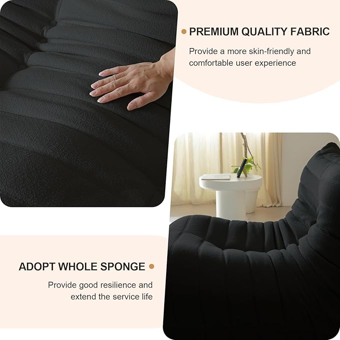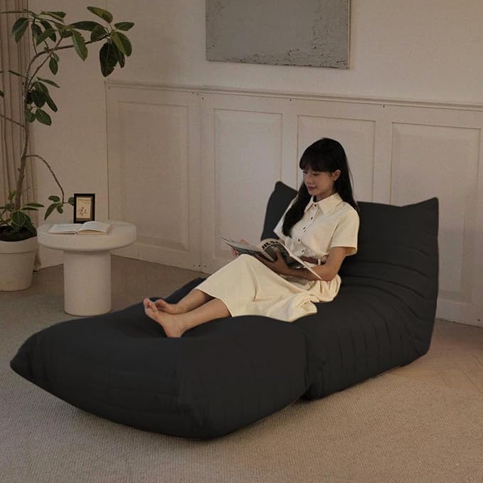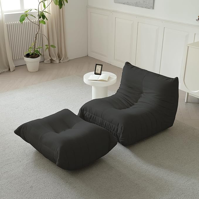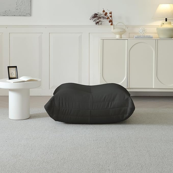 Luxury Ottomans, Modern Square Foot Rest for Sofa Couch Chair, Lazy Floor Seating, Fireside Bean Bag Chair, Tatami Sofa Lounger for Living Room, Bedroom, Office, Black