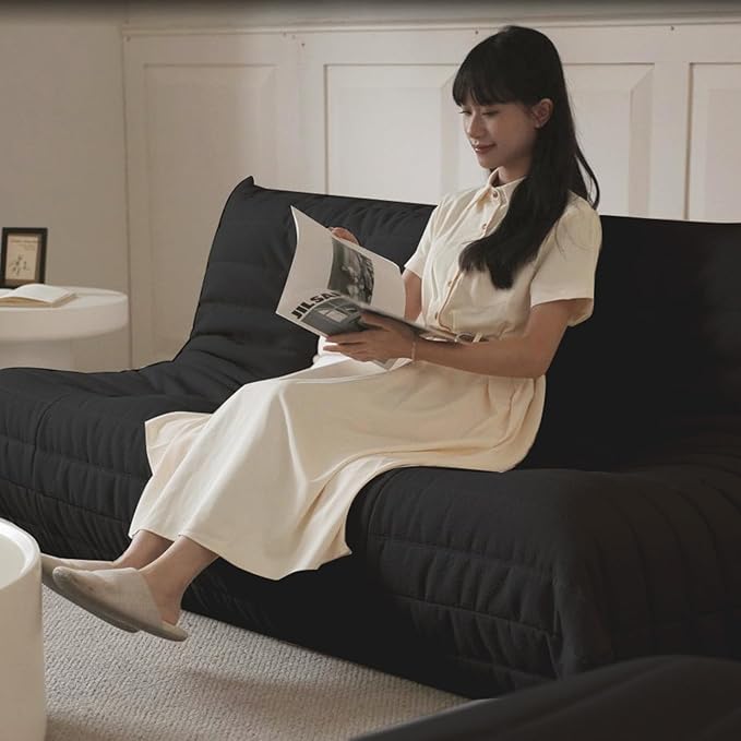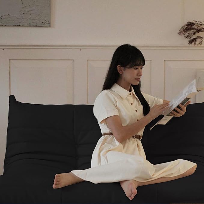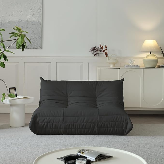 Luxury Sofa Couch Chair, Lazy Floor Seating, Fireside Bean Bag Chair, Ergonomic Tatami Sofa Lounger for Living Room, Bedroom, Office, Loveseat, Black