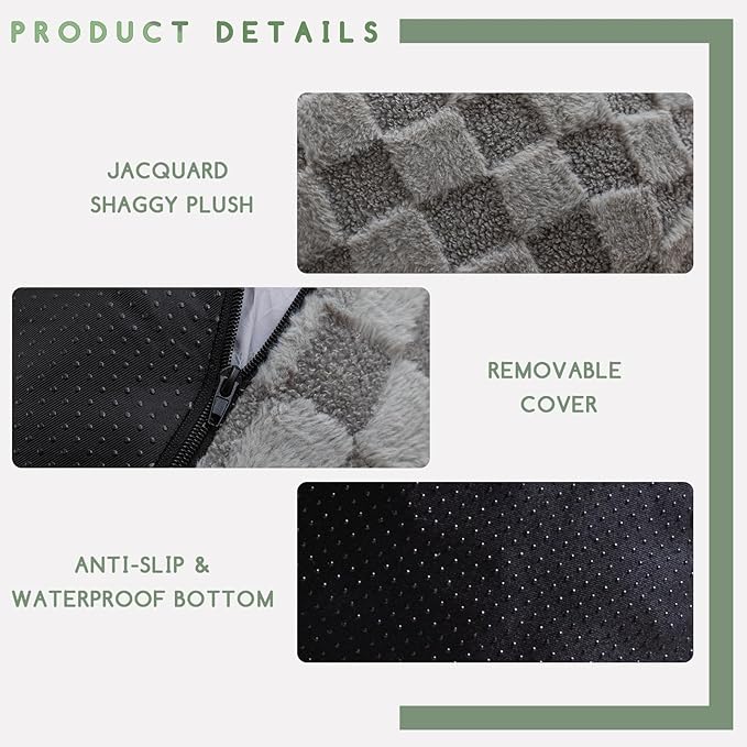 HIGOGOGO Round Stuffed Pouf Ottoman, Plaid Poufs with Foam Chunk Filling, Fluffy and Furry Pouf Foot Stool Storage Ottoman, 26 X 18 Floor Poufs Foot Rest for Living Room, Grey