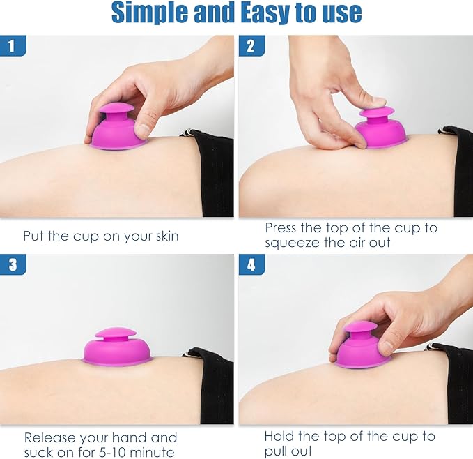 - Using method: Put the cups one the skin,Press the top of the cup to squeeze the air out, and relax then they would suck on the skin. Easy to carry and clean.