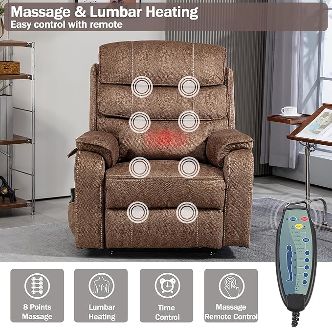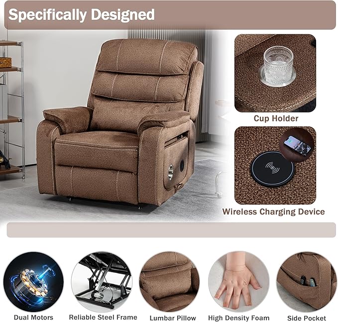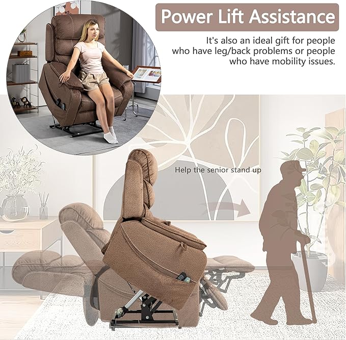 - 【Power Lift Assistance】Excellent lift chairs for elderly and adults. Counter-balanced lift mechanism to assist the senior stand up easily, smoothly adjust to lift or reclining position you prefer by pressing buttons (Recliner chair max reclining angle: 180°). It's an ideal gift for people who have mobility issues,looking for extra comfort.