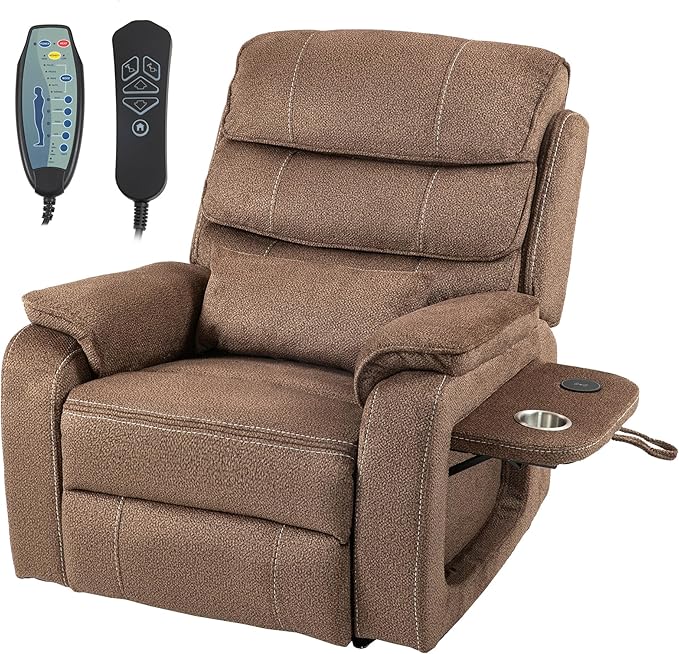 - 【Cup Holder & Wireless Charging Device】What a great chair!This recliner is designed with side pocket and a foldable tray table with cup holder and wireless charging device for cell phone. Just imagine that put your drink on the cup holder, without having to find sockets or tangle with cables, the efficient wireless charging feature makes charging easier and stylish. You will have a good time reading, sleeping, watching TV, and so on.