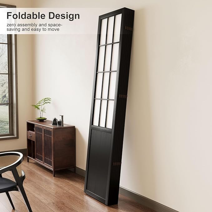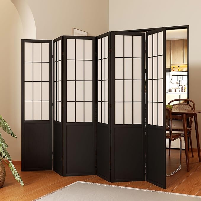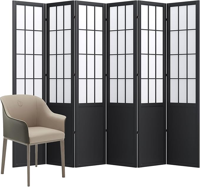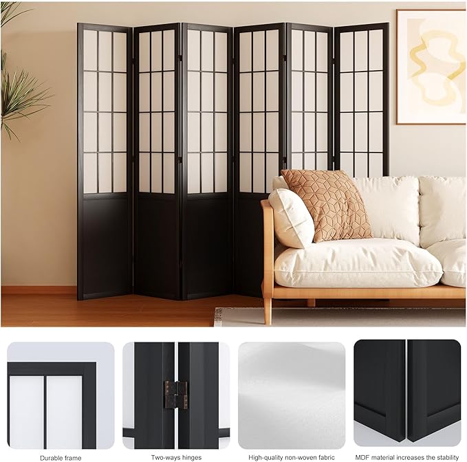 Room Divider, 66.9Inch Tall Japanese Shoji Style Folding Wood Screen with Double Hinges for Home Office Bedroom Hotel Decoration (6Panels, Black)