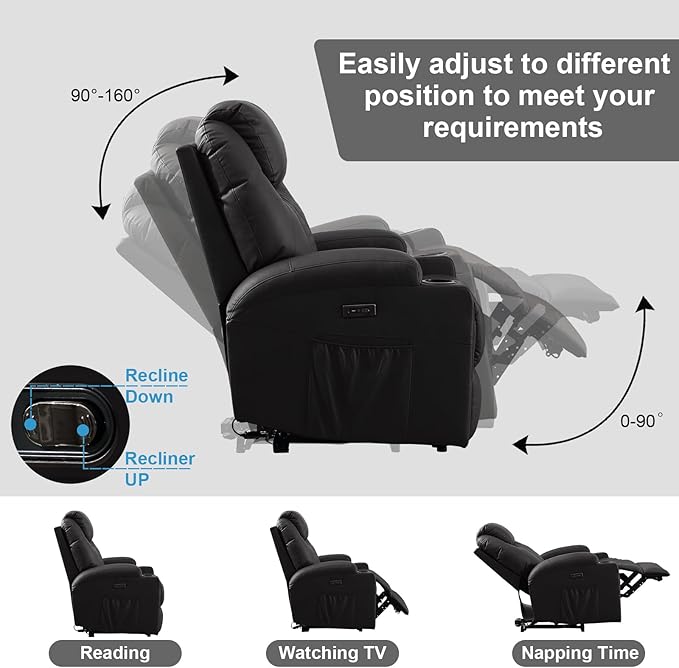 - Power Recline: This recliner can function as a versatile lounge chair for daily relaxation and as a luxurious home theater seat. With an electric button for smooth reclining between 100° to 150°, feature ensures effortless operation for users of all ages