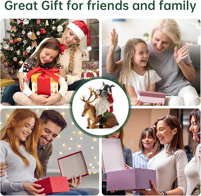 Garden Gnome Statues Resin Gnome Sitting On Deer Statues Solar Lights Outdoor Telescope Gnome Gifts for Yard, Patio Decor Gift (Deer Gnome)