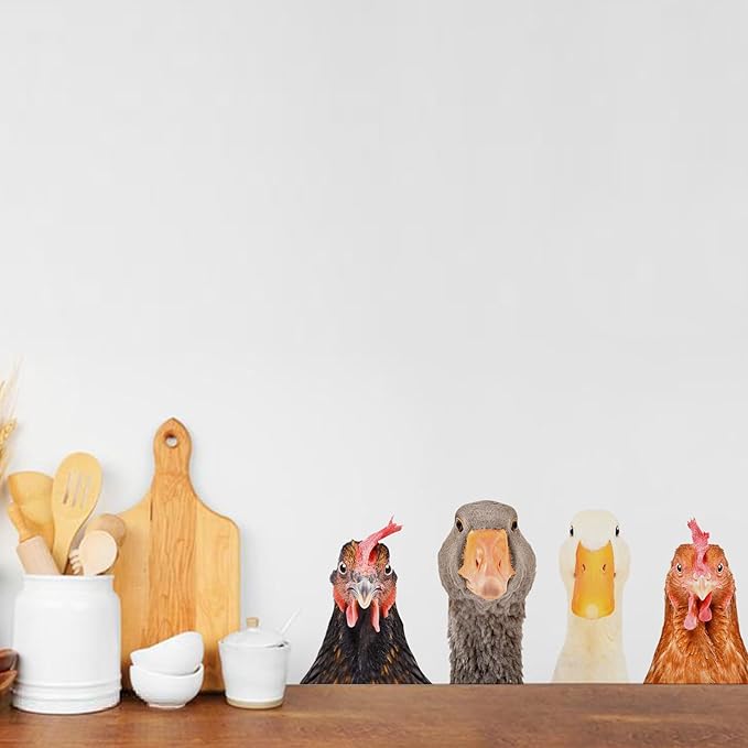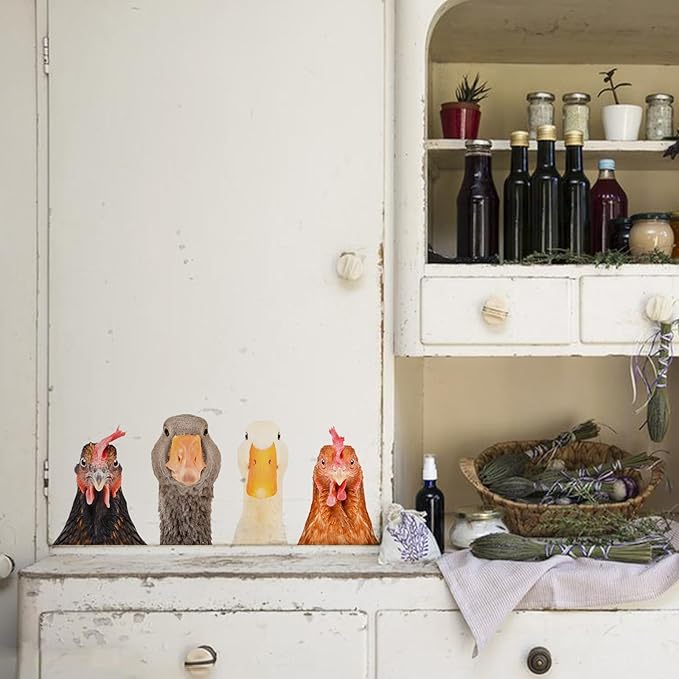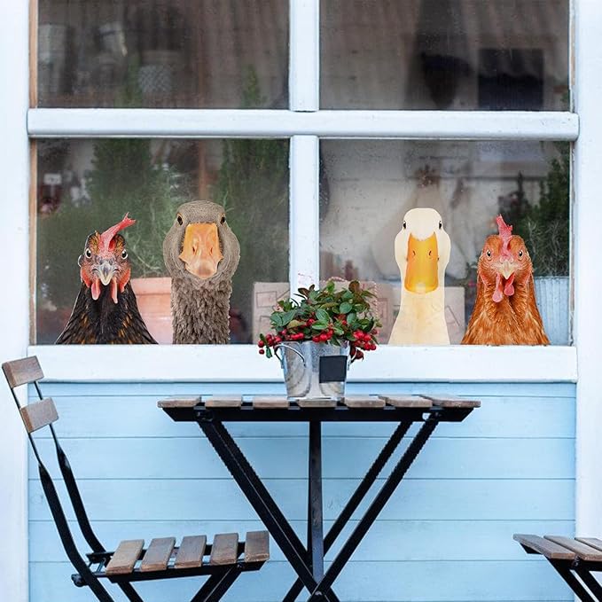 Funny Animal Windows Stickers Decor - 2 Hens Head & 2 Goose Head Window Cling Removable - Cute Animals Window Decals Peel and Stick - Funny Animals Wall Decor for Farmhouse Kitchen Door Refrigerator