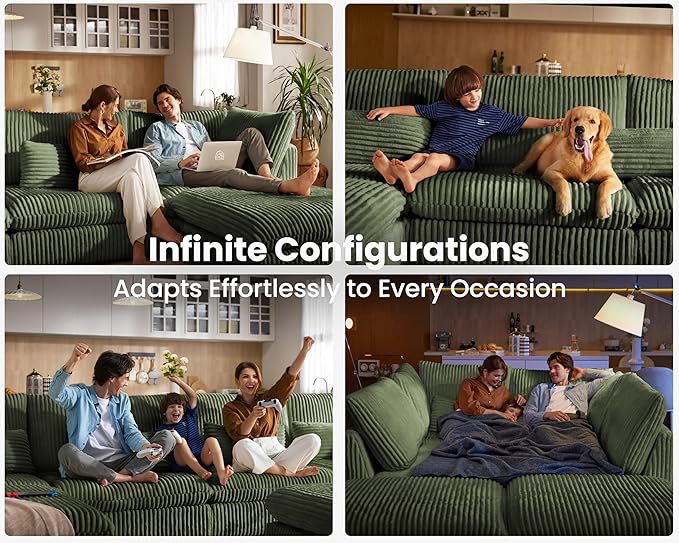 - 【Endlessly Modular for Tailored Space】Transform your space with ease using the fully modular design. Whether you need a cozy L-shape for movie nights, a U-shape or a spacious sleeper for entertaining, each piece reconfigures to fit your needs. This sectional adapts to any room, offering customizable comfort. Perfect for living rooms, home offices, or entertainment spaces, it provides flexibility without complicated tools. Enjoy seamless reconfiguration for relaxing, working, or entertaining