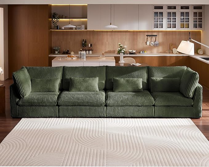 Oversized Modular Sofa, Extra Deep Cloud Corduroy Sectional Couch with Ottoman Chaise, Fluffy Chenille 4 Seater Sofa for Living Room, Villa (Basic 4 Seater, Corduroy Green)
