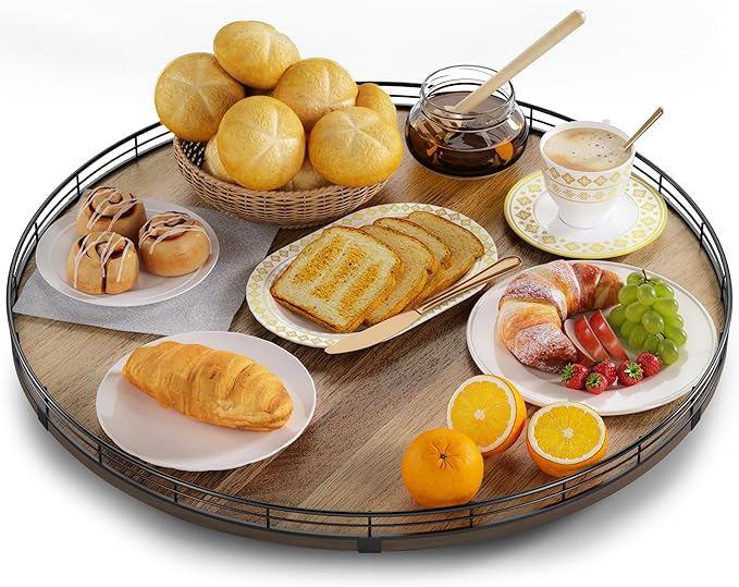 - Exquisite Texture- A turntable to meet your many home needs. Place it in your cabinet to easily store and access food, condiments, cans, medicines and more. As a coffee table tray, perfect for displaying napkin holders, vases, candles. Use it as a bathroom vanity tray to store lotions, perfumes, cosmetics, keep your life organized!