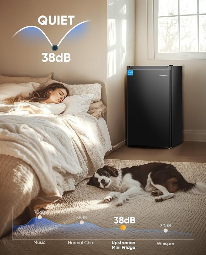 Upstreman 4.4 Cu.Ft Mini Fridge with Freezer, Single Door Mini Refrigerator for Bedroom, Extra Large Capacity, Energy-efficient, Small fridge for Office, Dorm, Kitchen, Black-BR44