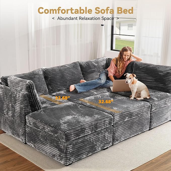 - Spacious Furniture:Sturdy solid wood frame, high-end breathable Plush corduroy fabric, filled with high rebound sponge, making this modular sectional sofa beautiful and comfortable, it can be a perfect match for your living room, bedroom, home office, etc.