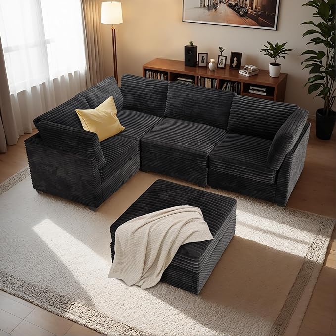 - Spacious Furniture:Sturdy solid wood frame, high-end breathable Plush corduroy fabric, filled with high rebound sponge, making this modular sectional sofa beautiful and comfortable, it can be a perfect match for your living room, bedroom, home office, etc.