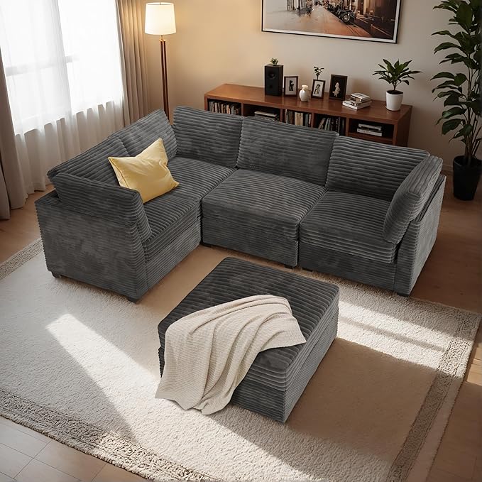 - Spacious Furniture:Sturdy solid wood frame, high-end breathable Plush corduroy fabric, filled with high rebound sponge, making this modular sectional sofa beautiful and comfortable, it can be a perfect match for your living room, bedroom, home office, etc.