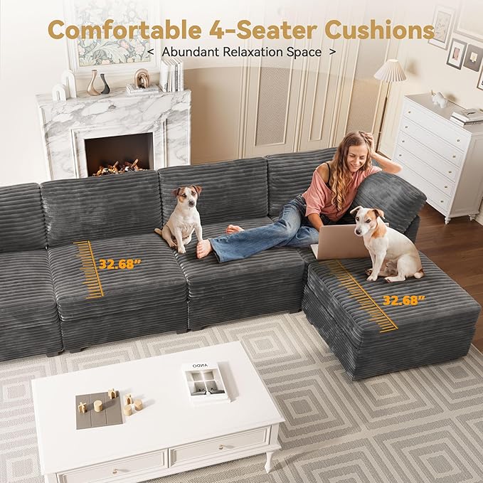 - Spacious Furniture:Sturdy solid wood frame, high-end breathable Plush corduroy fabric, filled with high rebound sponge, making this modular sectional sofa beautiful and comfortable, it can be a perfect match for your living room, bedroom, home office, etc.