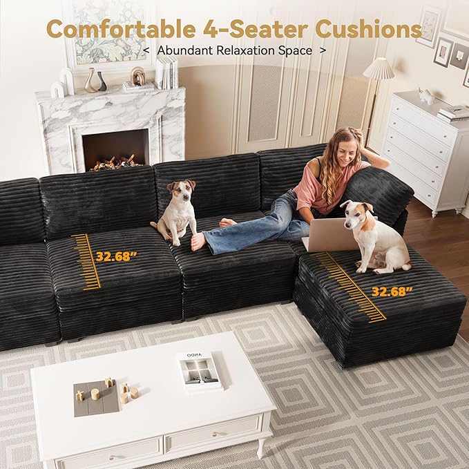 - Spacious Furniture:Sturdy solid wood frame, high-end breathable Plush corduroy fabric, filled with high rebound sponge, making this modular sectional sofa beautiful and comfortable, it can be a perfect match for your living room, bedroom, home office, etc.