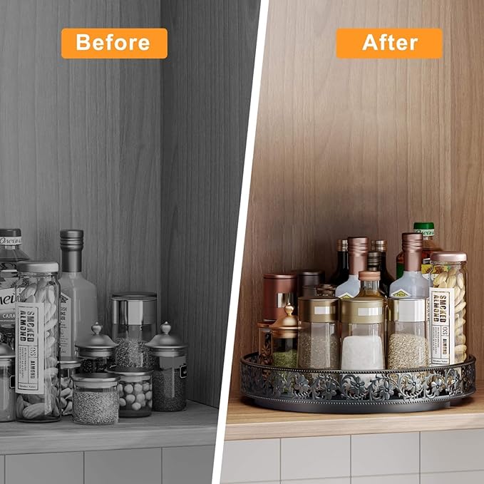 - Multifunctional Lazy Susan: This Lazy Susan Organizer can be used for kitchen countertops or cabinet storage, also suitable for dining table, bathroom, office, bedroom, living room, laundry room. It can be widely used to organize spice condiment bottles, food jars, cosmetics, bath products, skin care products, nail polish, beverage snacks, etc.