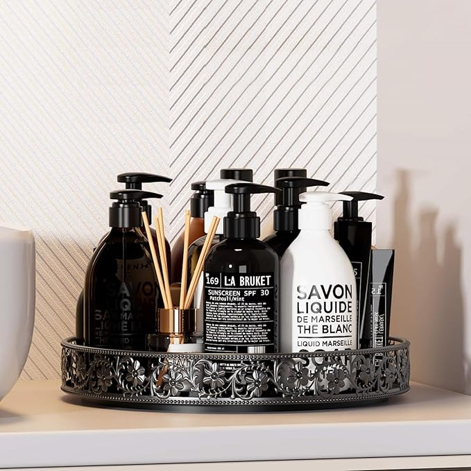 - Floral Raised Edges Design: The raised edge lazy susan features a beautiful classic floral design, provides superior decorative vision, and prevents items from falling while spinning, making it safer to move the lazy susan organizer from one place to another. The open design keeps items visible and easily accessible.