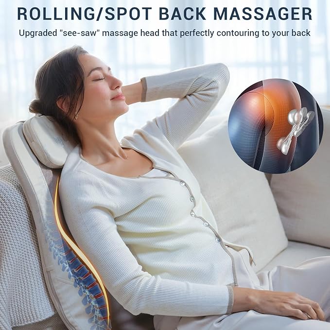 - Upgraded Massage Head for Back Relaxation: Unlike traditional cushions with fixed heads, our shiatsu back massager features an innovative "see-saw" massage head that moves up and down, perfectly contouring to your back. And the flexible S-curve design of the massager conforms to your body contours perfectly, providing a personalized massage experience. It’s also FSA HSA Approved Products Only, adding to its value
